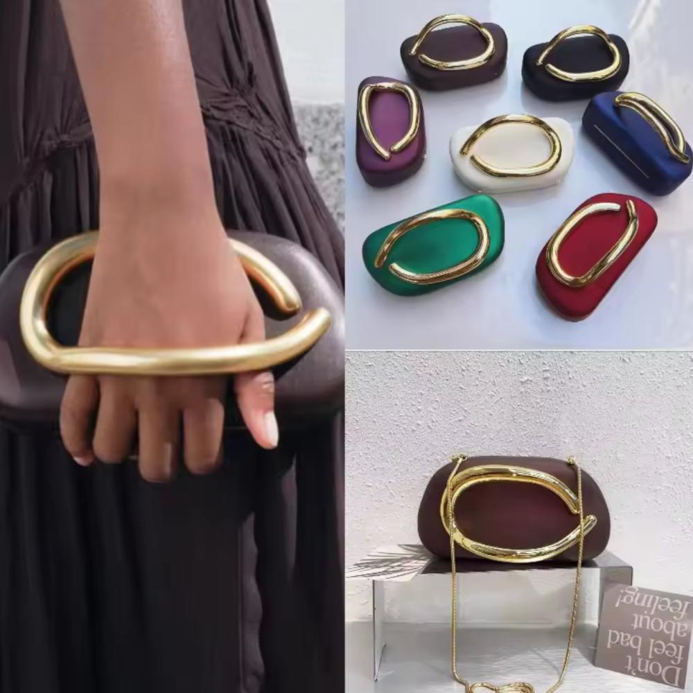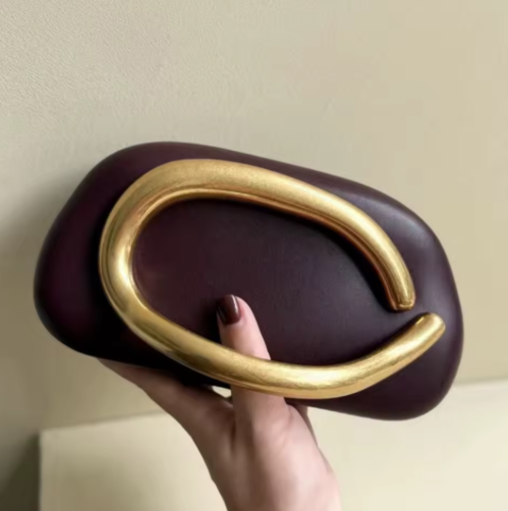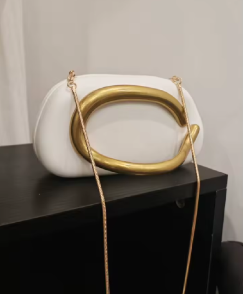 اضيفي لمسة فخامة لإطلالتك مع هذه الحقيبة النسائية الأنيقة بتصميم بيضاوي عصري ولمسات ذهبية تلفت الأنظار.