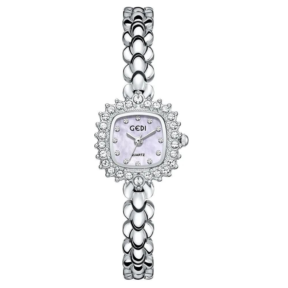 تألقي مع ساعات كوارتز للنساء ذات التصميم الفاخر والمخصص للمعصمين الصغيرة. تتميز بسوار معدني أنيق وأحجار الماس اللامعة حول المينا لتضفي لمسة من الفخامة على إطلالتك اليومية أو في المناسبات الخاصة.